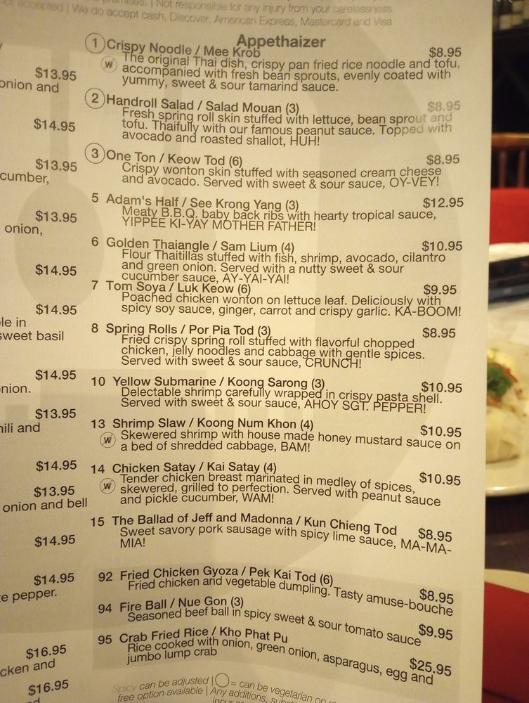 For a heartier meal, indulge in dishes such as Pak Phat Veggie and Tow Phat Ped Thai High, both offering a medley of fresh vegetables sautéed with fragrant spices. With options for takeout, delivery, and outdoor seating, Thai Juan On provides a casual atmosphere suitable for lunch or dinner with friends and family. Enjoy their happy hour specials, or simply unwind with a drink at the full bar. Don’t miss the warm ambiance and exceptional service that truly sets this establishment apart!